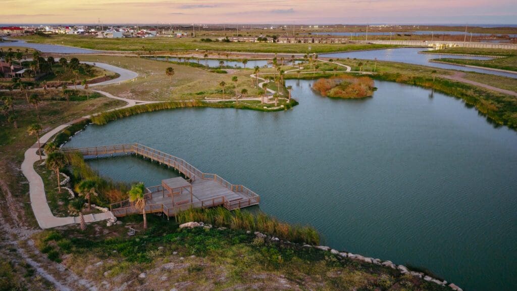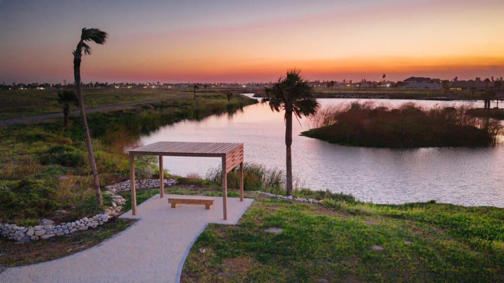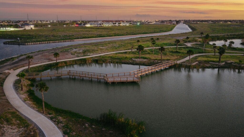 The development’s guiding principles shine as a beacon of ecological design within the Gulf Coastal Plains of Texas. Integrating a series of trails and dryland coastal hammocks into preserved freshwater ponds and ecosystems, the community becomes a haven for dozens of local and migratory species.